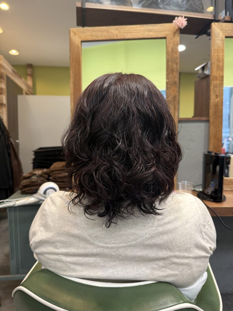 今回初めて指名してくださって緊張はしましたが綺麗に全体が染まり前回のパーマを活かしウエーブスタイルで仕上げました。